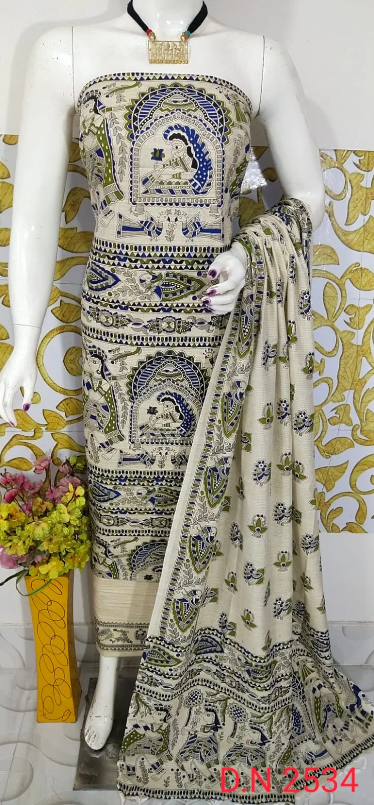 Elegant off-white base par beautiful traditional Madhubani inspired print ๐๐